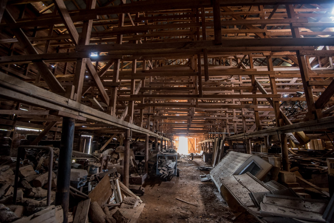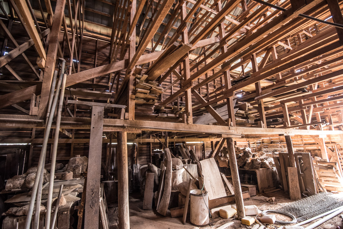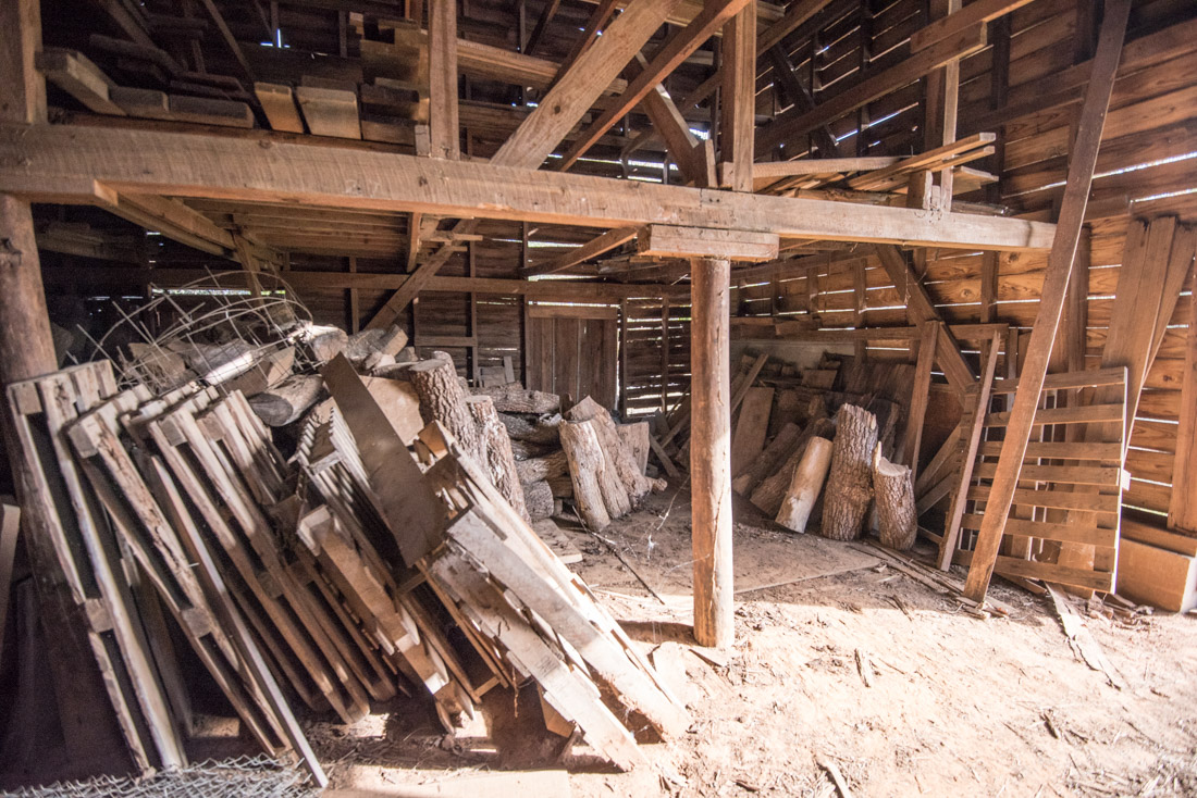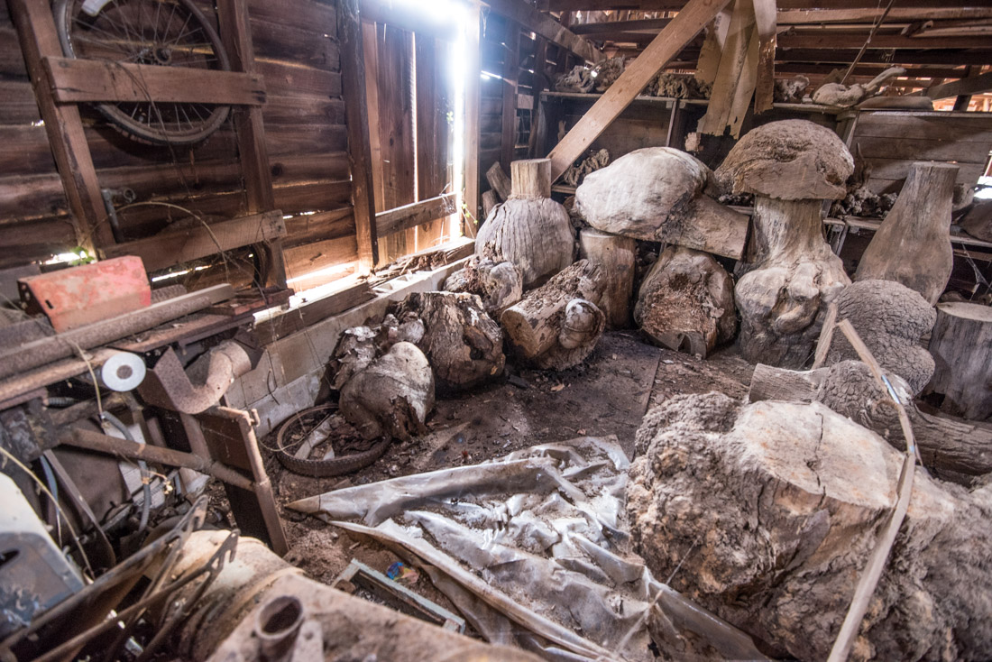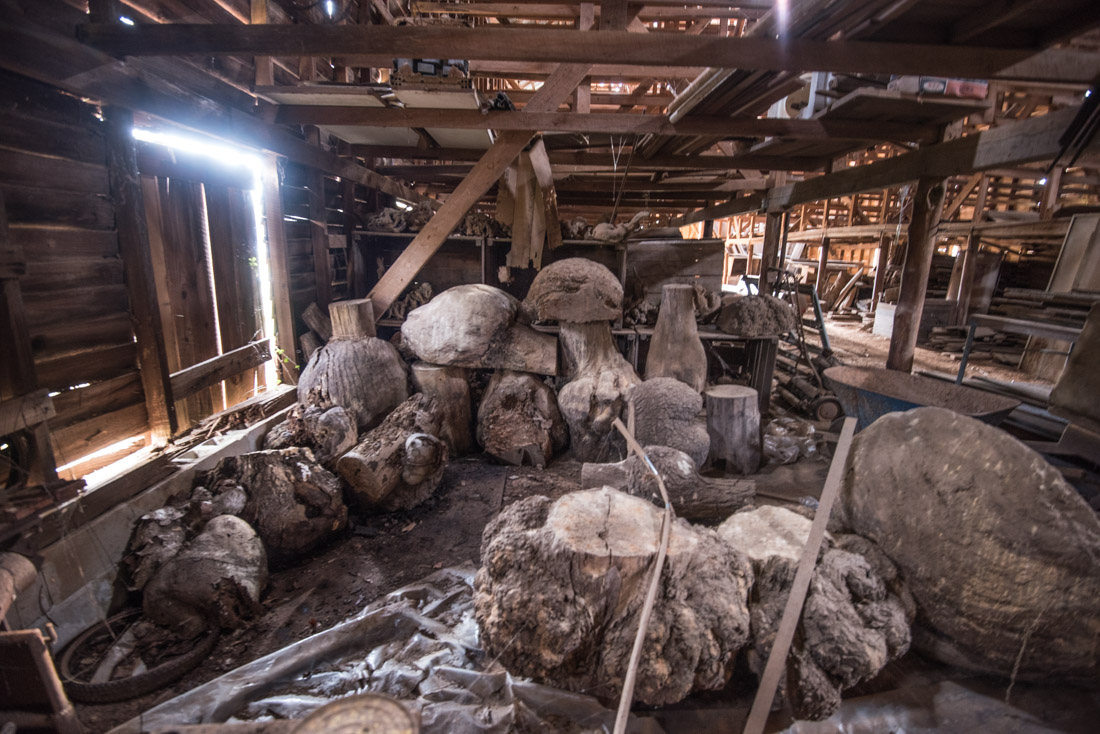 Photos of barn and wood / burls inside.