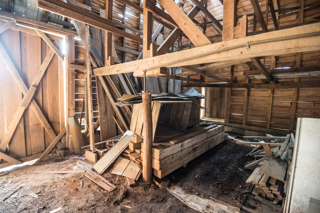 Looking down the center aisle of the barn - several items need to be